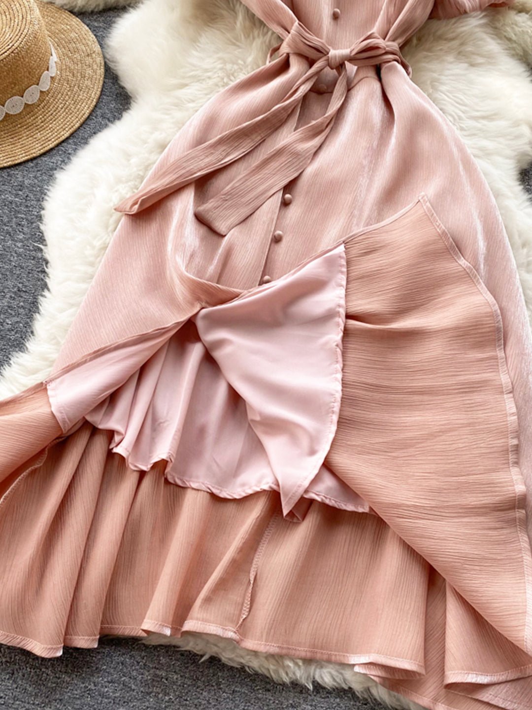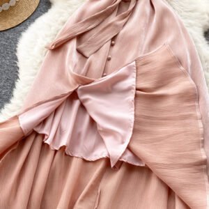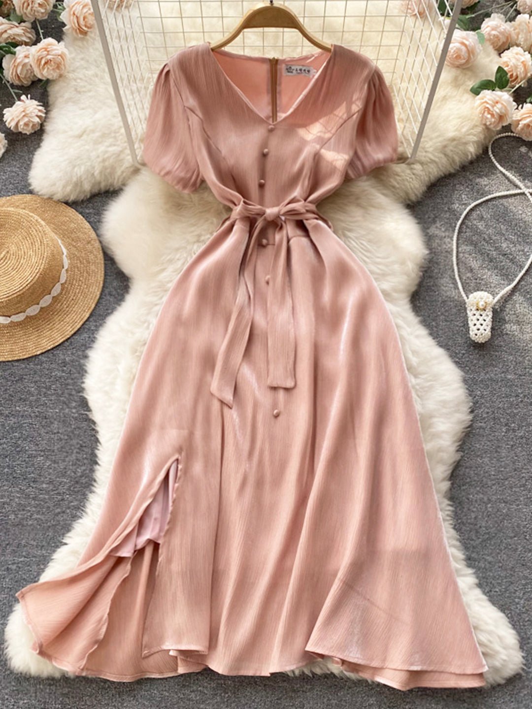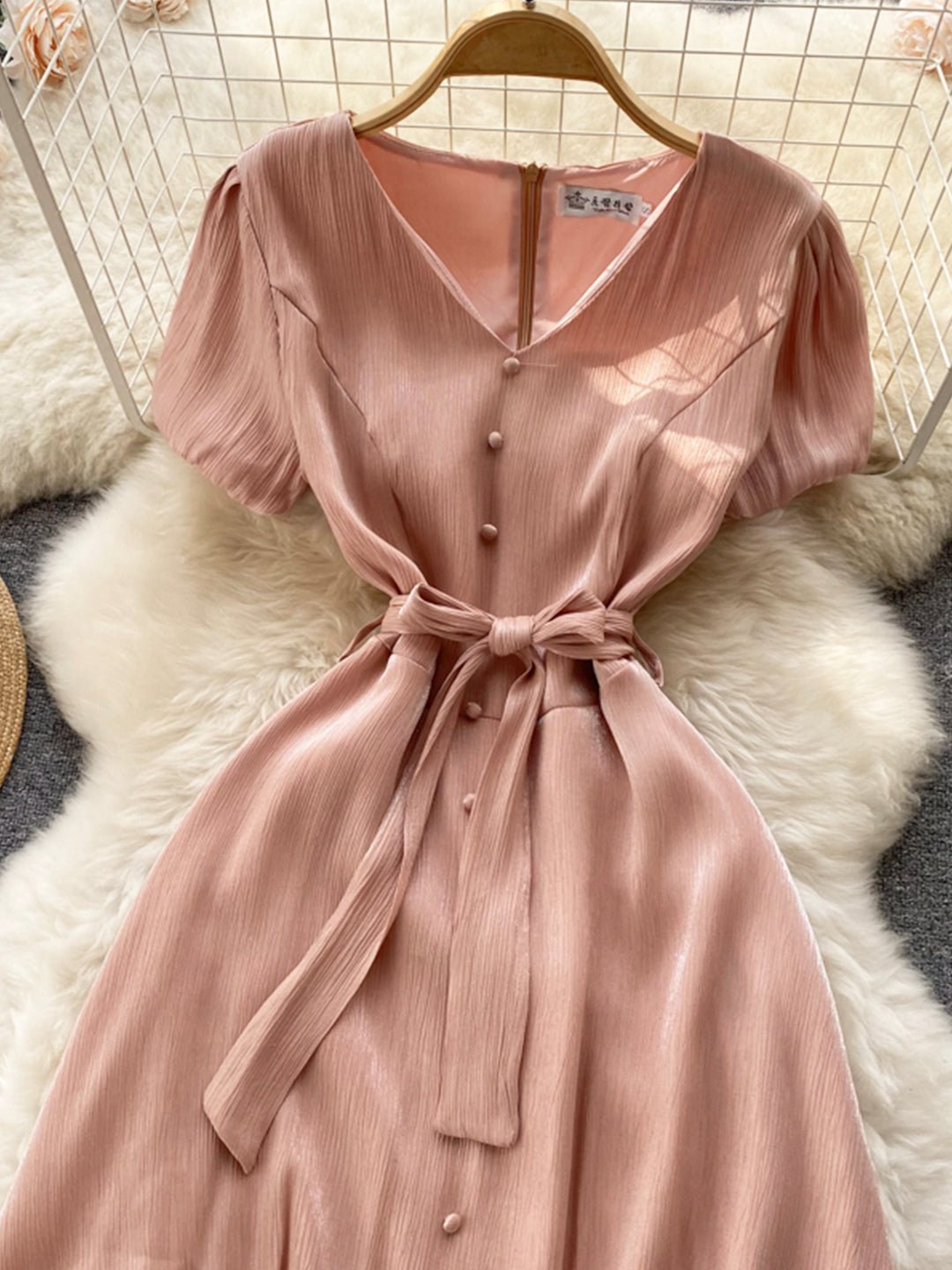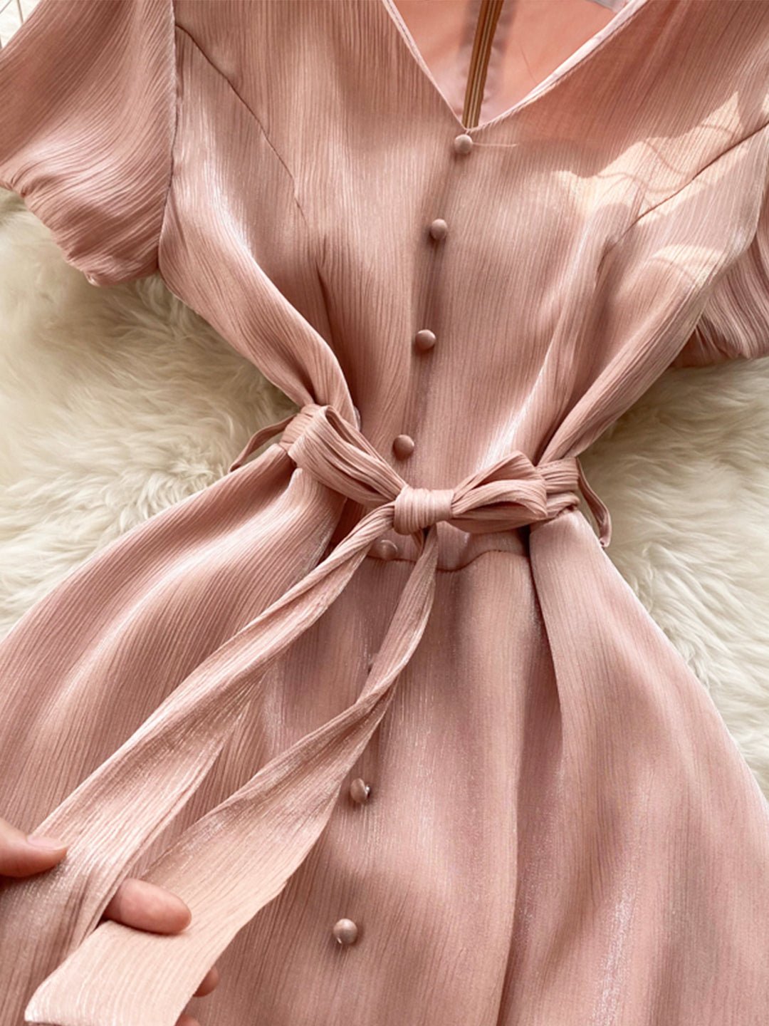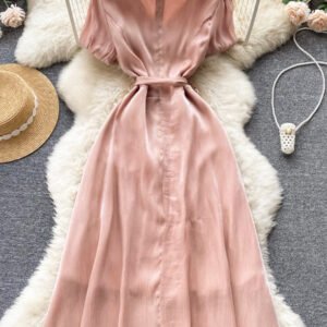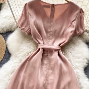 Pink V-Neck Short Sleeve Dress, Fashion Dress